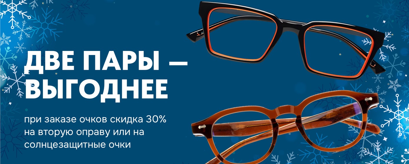 При заказе очков скидка 30% на вторую оправу или на солнцезащитные очки